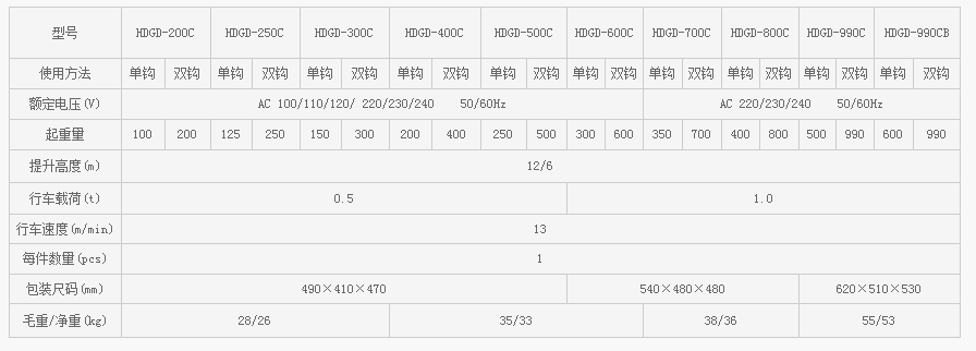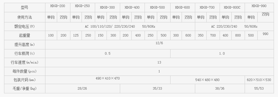 微型電動葫蘆HDGD-500C:特點帶急停開關及強制斷開限位開關,防護等級IP54,帶熱保護裝置。
